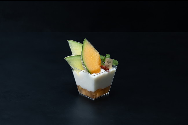 つぶつぶのメロンジュレの上に、ふるふるの杏仁豆腐を乗せた、口の中でひんやりととろけるデザート。メロンの味を最大限に生かす、ミルキーな杏仁豆腐にこだわりました。