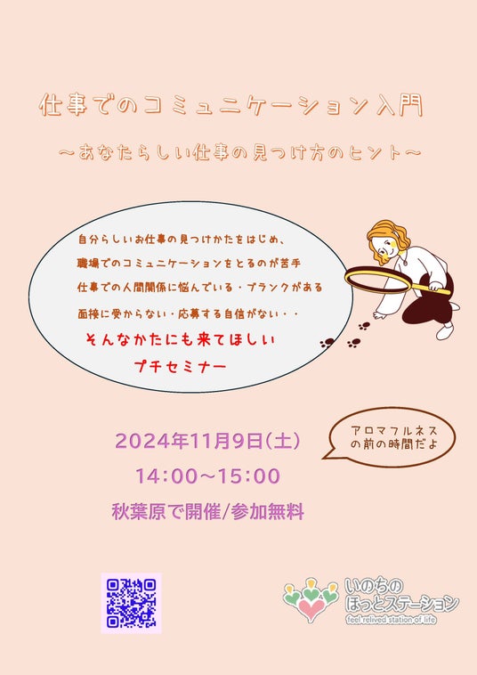 2024年11月9日、NPO法人地域福祉推進事業団が運営する「いのちのほっとステーション」(本社:東京都千代田区)は、「キャリア相談支援事業」の提供を開始します。この新サービスは、仕事でのコミュニケーションのポイントや自分にあった仕事の見つけ方を学ぶことによって、「仕事をする上での生きづらさを緩和する」ということを実現します。詳細は以下よりご確認ください。https://career-inochi-hotstation.peatix.com