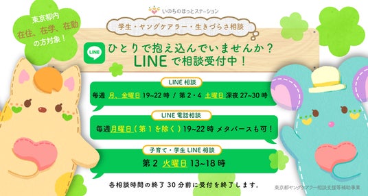 ・SNS相談:月金19~21:30&第2・4土曜27~30時