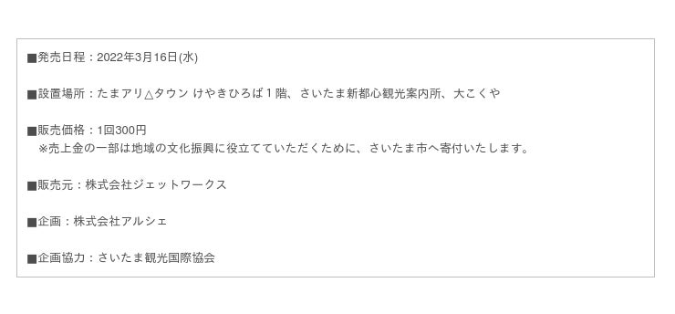 さらに今回は、映画【翔んで埼玉】の劇中に出てくるパワーワード「与野はすっこんでろ!」がレアアイテムとして登場します!売上の一部は地域の文化振興に役立てていただくため、さいたま市へ寄付いたします。