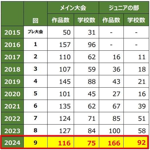 ■2024大会 ジュニアの部の応募数が最多応募数を更新。賞品総額も200万円相当に増額
