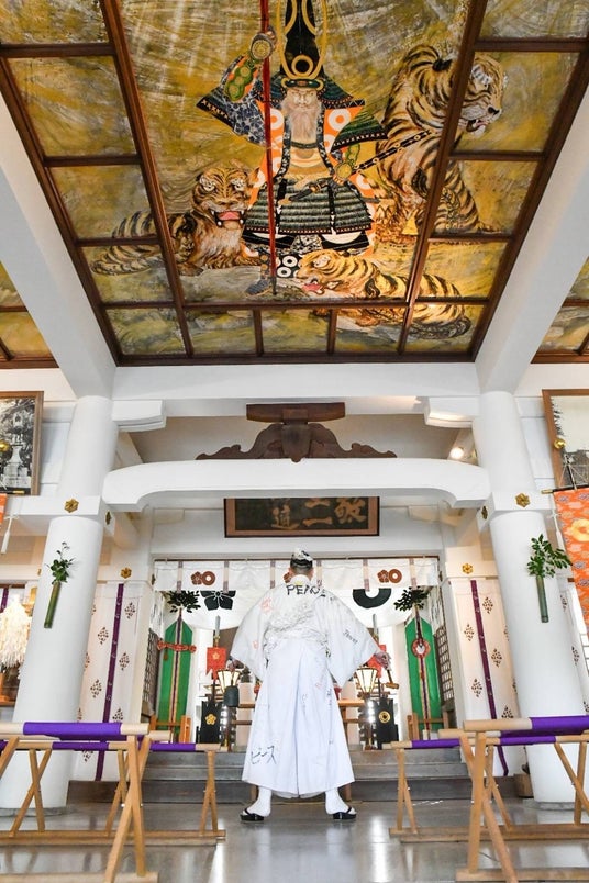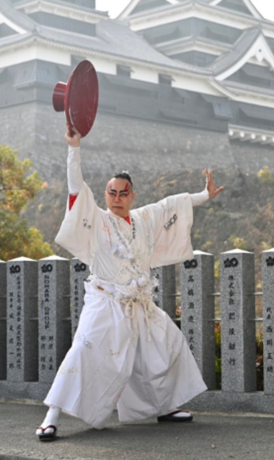 熊本市内の加藤清正神社では、熊本の礎を築いた加藤清正公に対し、震災からの復興と地域の安寧と世界平和への祈りを込めた創作歌舞伎『平和成祈鐘(へいわになれやいのるはこのかね)』、現代の災いを飲み干す演目『世響斯輝伎(よにひびけかくてるのわざ)』の奉納を行いました。