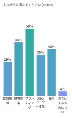 ついで「購買促進」「採用」「UGC獲得」など、多様な目的で活用されていることが明らかに。