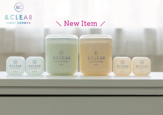 「アンドクリア」シリーズは、2024年春に発売した自動車用消臭芳香剤で、ゲルタイプとエアコン取り付けタイプの2種類で展開しています。どちらも透明感のある容器を採用し、ロゴ部分にはオーロラに光るホットスタンプを施した清潔感あふれるデザインが特長です。