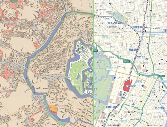 再生古地図イメージ WEB上で古地図と現代地図を比較することができる