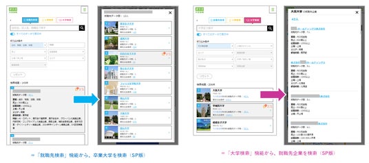 内容 :就職先企業や職業などから出身大学を検索出来る新サービス