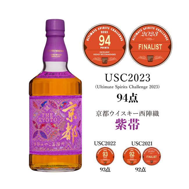 京都酒造株式会社(以下、京都みやこ蒸溜所 所在地:京都府船井郡京丹波町、代表取締役:豊田和也)の京都ウイスキー西陣織シリーズは、アメリカで開催された世界最高の蒸溜酒のコンペティションといわれるUSC(アルティメット・スピリッツ・チャレンジ)2023において、3年連続で高得点を獲得しました。