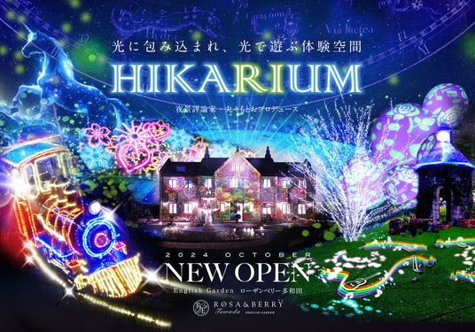 株式会社メリーデイズ(社長:大澤健)が運営する観光庭園「English Garden ローザンベリー多和田」(滋賀県米原市)の施設内におきまして、光のナイトイベント「~光に包み込まれ、光で遊ぶ体験空間~HIKARIUM (ヒカリウム)」を開催いたします。夜景評論家 丸々もとお氏がプロデュースする日本初(※)の体験型コンテンツがローザンベリーに登場します。光の世界に「遊び・体験」の要素を加えた、新しい光のナイトイベントをお楽しみください。