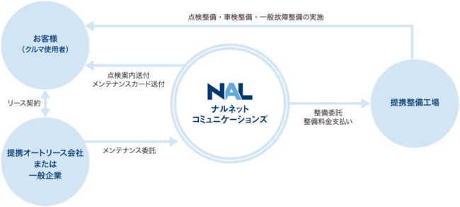 全国約10,000カ所以上の提携工場に管理車両のメンテナンスを委託、本社で車両情報を一元的に管理し、効率的なデータ収集や顧客対応を実施しています。少ない入庫回数で充分なサービスを行うことで車両稼働率を向上させ、自動車ユーザーの利便性を高めるほか、独自の整備データベースに蓄積した整備記録に基づくメンテナンス料算出を行うことで整備工場の業務効率化を支援しています。