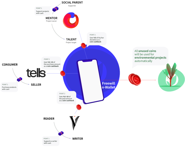 SeCは、Freewillが提供する各種サービスで発行されておりますが、他企業のポイント制度への新規導入や置き換えも可能です。SeSのポイント制度を導入することで、企業はSDGsや環境問題へのより具体的な取り組みが可能となります。地球課題の解決に取り組む団体・企業様と共に、「人類社会の豊かな生活と地球環境の共存共栄」の仕組みを発展させることができます。
