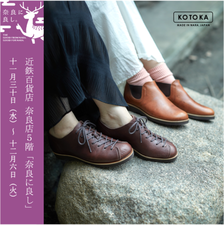 新しい奈良の革靴「KOTOKA」は、来る11月30日(水)~12月6日(火)、近鉄百貨店奈良店 5階 「奈良に良し」売り場にてポップアップを実施いたします。