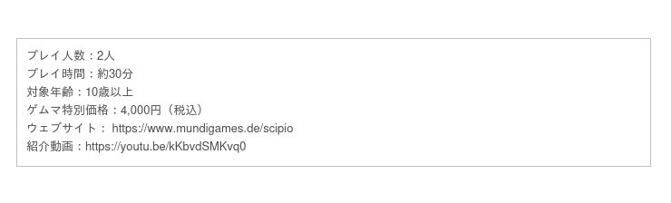 ローマ軍またはカルタゴ軍を操り、相手軍を粉砕することを目的とする対戦ゲームです。各ラウンドは2つのフェーズからなり、6枚の数字カードから各フェーズ3枚ずつを選びプレイします。強いカードをどちらのラウンドで使うべきか…戦場の状況から相手の意図を読み、裏をかくことが勝利への鍵です。