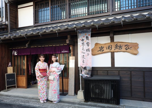 着物を着て、城下町の街並みが残る通りを散策。気分は江戸時代の町娘。どこで撮影しても「映え」間違いなし!