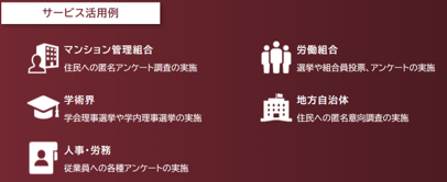 現在投票活動が実施されているマンション管理組合や労働組合を中心に、幅広くご活用頂けます。