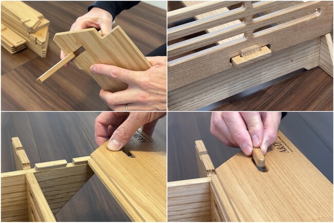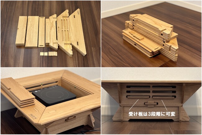 ◇七輪囲炉裏は日本伝統の指物技術を用いて作られており、その組み継手で、組立と分解が出来るアウトドア家具です。ネジやボルト、工具類を必要とせず組立できます。