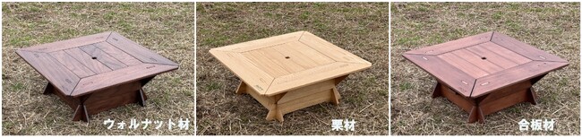世界三大銘木といわれる「ブラックウォルナット材」を使用したプレミアムタイプ。チークやマホガニーと並ぶ高級木材で、密度が高く堅い木材で、チョコレートのような色合いが特徴です。落ち着いた雰囲気を空間にもたらし、インドアでは高級家具に使用されています。アウトドアのフィールドでもプレミアムな空間を作り出せるしょう。