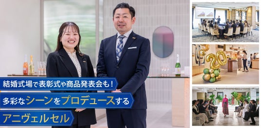 AOKI グループでブライダル事業を展開している「アニヴェルセル」では、結婚式利用にとどまらず、企業や団体の催事などでの宴会場活用を促すMICE事業に注力しています。展示会や国際会議、商品発表会、入社式など、立地やプランニング力を生かした多彩な活用事例を生み出しているアニヴェルセルの新しい姿を紹介します。