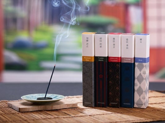 ■歴史上の人物を香りで表現した新シリーズ「記香録(きこうろく)」人物の生涯や背景に宿る物語を香りとして現代に伝えることをコンセプトとしており、パッケージデザインには家紋とゆかりのある色やモチーフを取り入れ、訪日客や若い世代にも手に取っていただけるよう、和モダン柄にアレンジしています。