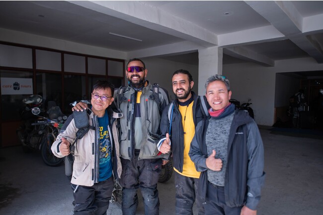 日本をはじめ、タイ、インドネシア、オーストラリア、韓国、フィリピンなどアジア太平洋地域から60人以上のライダーが、極上の瞬間を味わうためにこのライドプログラムに参加。ロイヤルエンフィールドのアドベンチャーモデル「ヒマラヤ」に乗り、ヒマラヤ山脈西側にあるインド・ラダック地方のなかでも、とくに自然豊かな場所を進みました。そしてめまぐるしく変わるチャレンジングな路面状況や地形、天候などに一緒に立ち向かうなか、3つのパーティに別れた総勢60名のライダーたちは、毎日の挑戦やそれを克服するための会話を通して、仲間意識や絆を日々深めていきました。
