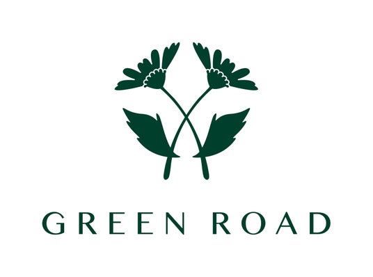 グリーンロードロゴ(マーガレット)交差するふたつの花は、花や緑を媒体として、人と人、心と心をつなぐ、想いを届けるというGREEN ROADの仕事とその理念を表し、手のひらのような葉のカタチは、人の想いを、人の「手」で届けるということを表現しています。