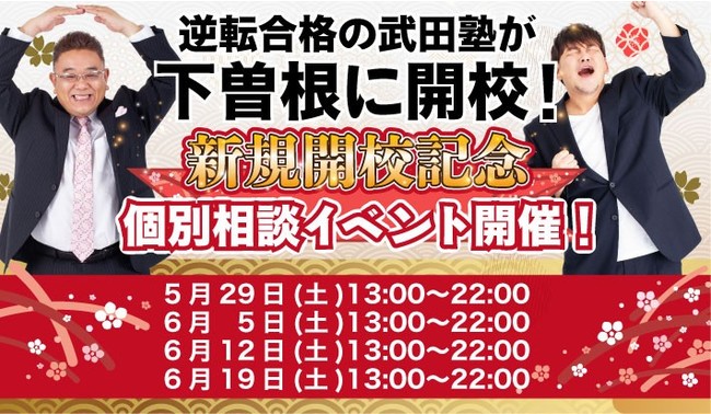 武田塾下曽根校の開校を記念して、下曽根校では個別相談イベントを実施いたします。