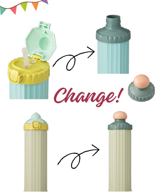 家族みんなで楽しめる300mlの新サイズ!シーンに合わせて飲み口が変えられる!かわいいデザインのマグボトル!!