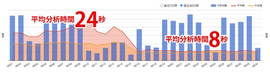 従来、パスカルの分析機能では、1回の分析に平均24秒を要していました。しかし、今回のアップデートにより、分析時間が大幅に短縮され、平均8秒での分析が可能となりました。これにより、分析時間は約3分の1に短縮され、パスカルをお使いの皆様の作業効率が大幅に向上いたしました。今後も、継続的な改善を通じて、より優れたサービスを提供してまいります。