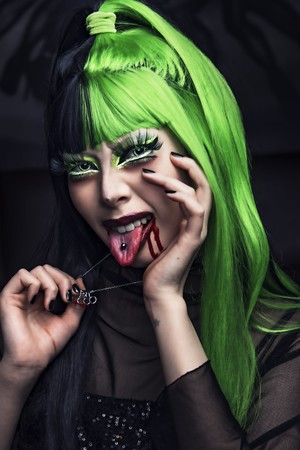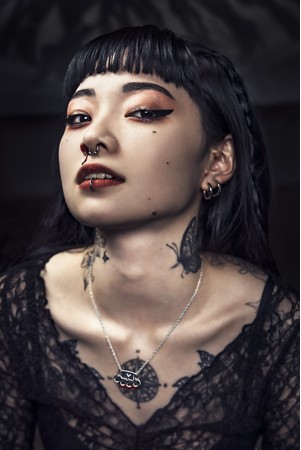 メンバーは独学刺繍作家の カオス・ゾルディック、タトゥーまみれ 白亜御前、元・車の塗装工のをに@ぐんそー、生き血がロマネコンティ女郎蜘蛛。音楽とモデルとアートと、一筋縄ではいかない見かけで疾走中!