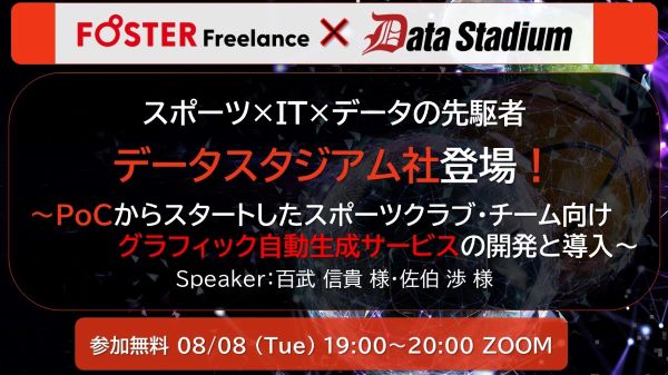 ITフリーランス向け案件紹介サービス「フォスターフリーランス」を運営する株式会社フォスターネット(以下フォスターネット)は、データスタジアム(株)と連携し、スポーツビジネスにおけるデータの利活用について、2023年8月8日(火)にウェビナーを開催します。