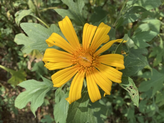 農薬を使用しない栽培方法においては、自然の植物等を用いて農薬の代わりにするなどといったアイデアが必要となってきます。そんなアイデアの一つとして、サンフラワー(ひまわり)はキク科の植物であるため、除虫菊のような効果を期待し、自社農園ではスパイスとスパイスの間に植えています。