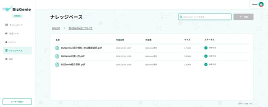 BizGenieのRAG機能は直感的で使いやすく、ファイルの登録や更新が容易に行えます。