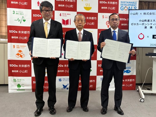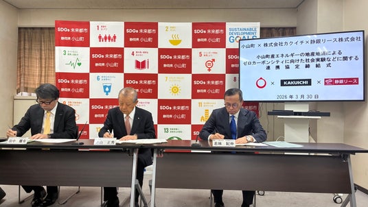 株式会社カクイチ(代表取締役社長 田中離有)は、小山町(町長 込山正秀)および静銀リース株式会社(代表取締役社長 若林紀伸)と、「小山町産エネルギーの地産地消によるゼロカーボンシティに向けた社会実験などに関する連携協定」を締結いたしました。