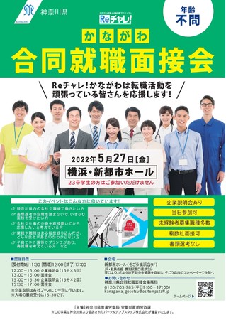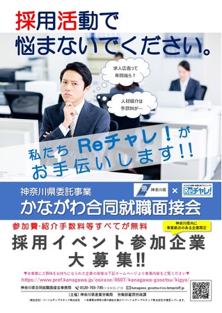 ※かながわ就職・転職応援プロジェクト「Reチャレ!かながわ」 は県内企業の採用活動および求職者の就職活動を支援する取り組みで、神奈川県がパーソルテンプスタッフ株式会社に運営を委託しています。