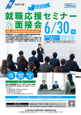神奈川県内に拠点を持ち、かつ採用意欲の高い50社が出展する転職者・再就職希望者向けの面接会。