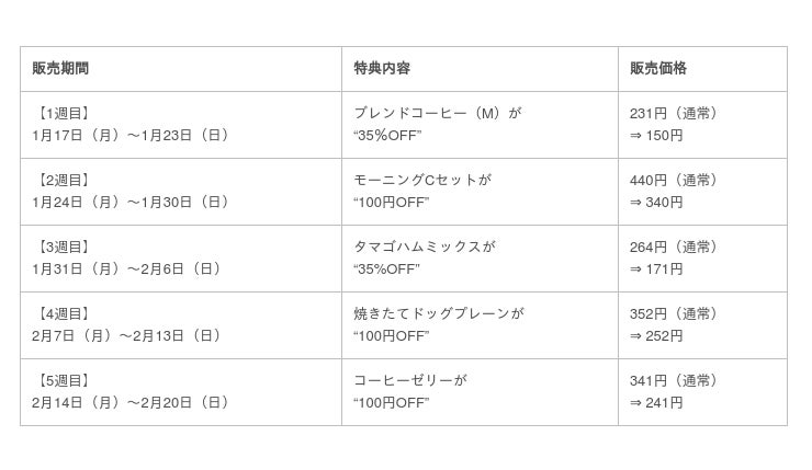 ・対象ドリンク:ブレンドコーヒー(M)、アメリカンコーヒー(M)