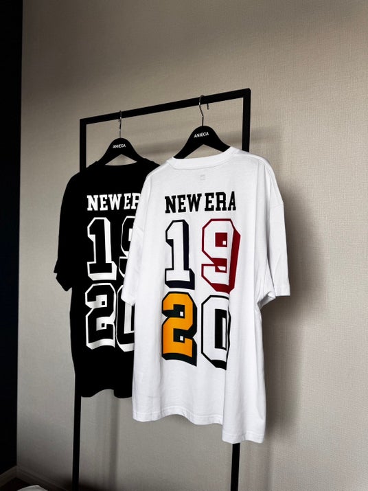 WHITE/BLACK 6,050円(税込)胸元には ANIECAのブランドロゴ、背中にはNEW ERA(R)創業年の「1920」をフィーチャーしたロゴを大胆にレイアウト。コットン100%のしっかりした生地とゆったりしたサイズ感で、これからの季節にピッタリです。WHITEとBLACKの2色展開にM・L・XLの3サイズを用意しました。ロゴデザインが存在感を放ちながらもさまざまなコーディネートに取り入れやすい一枚です。