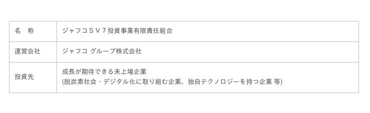 中国電力株式会社(本社:広島県広島市中区、代表取締役社長執行役員:瀧本 夏彦、以下「当社」)は、ジャフコ グループ株式会社(本社:東京都港区、代表取締役:三好 啓介、以下「ジャフコ」)が未上場企業への投資を目的として運営する「ジャフコSV7ファンド」(以下「本ファンド」)へ出資しましたのでお知らせします。