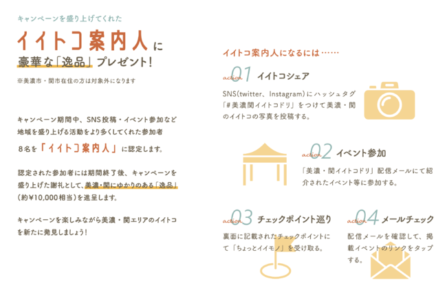 お得なエリア情報と「ちょっとイイモノ」を受け取りながら、美濃市・関市の魅力に触れるキャンペーンを開始しました。無料エントリーで豪華な「逸品」を獲得できるチャンスもありますので、是非お気軽にご参加下さい。
