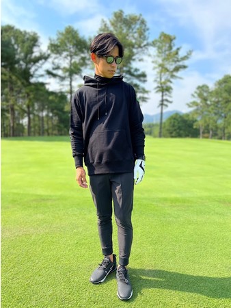 秋のゴルフウエアにぴったりの軽めに仕上げたライトフーディー。