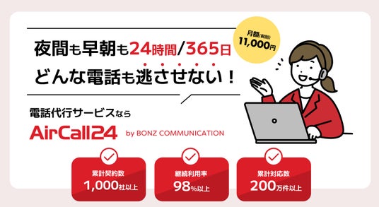 株式会社ボンズコミュニケーション(本社:神奈川県横浜市、代表取締役社長:山本 篤史)は、「24時間電話代行サービス AirCall24」でオプション機能を追加リリースいたしました。