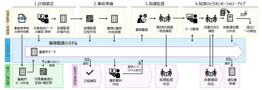 (1)事業所・データ、対象施設データの自動連携、(2)対象施設・データ、およびその他監査に伴うデータの一元管理
