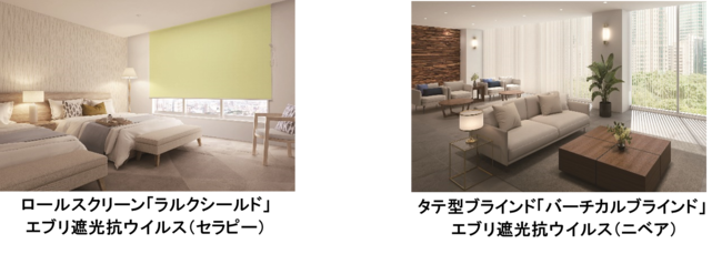 また、「ライフ抗ウイルス」と「エブリ遮光抗ウイルス」の両生地は、ロールスクリーンで幅3mまで製作できる広幅対応生地とし、事務所やホテル、医療・教育施設などの大開口窓など、多様化する使用シーンに対応した提案をおこなってまいります。