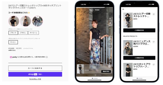 ユーザーはSNSを見るような感覚で、次々とアイテム紹介やコーディネートの動画を視聴することができます。加えて、Tolstoy TVにもショッパブル機能があるため、商品ページでの活用と同様に動画から遷移なく商品を確認、購入を促すことができます。