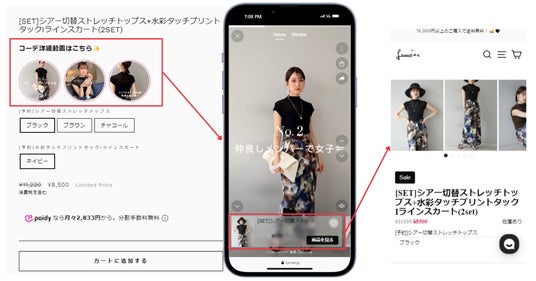 商品の使用イメージを動画で詳しく伝えることができ、かつ動画から直接購入の導線もあるため、 ECサイトの滞在時間やCVR、顧客単価の向上が期待できます。