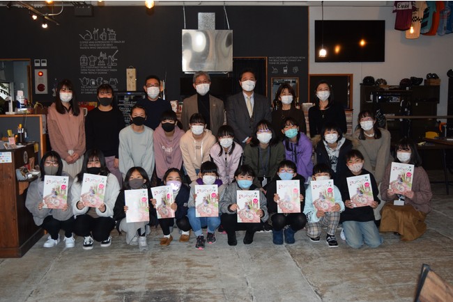 伊豆市内の小学校4年生~中学生まで20名の子どもたちの、約半年にわたる活動の集大成として完成発表会を行います。プロカメラマン・新聞記者・ライター・デザイナー・編集者からのレクチャーを受け、子どもたち自身が文章やイラストを作成。プロがデザインして仕上げています。