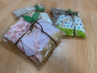 「めばえプロジェクト」(NPO法人 芽ばえ)では、令和3年1月から、小さくうまれてきた赤ちゃん用のベビー服を製作し・ラッピングをボランティアの手づくりで行い、寝屋川市の190人の赤ちゃんとそのご家族にお渡しすることができました。