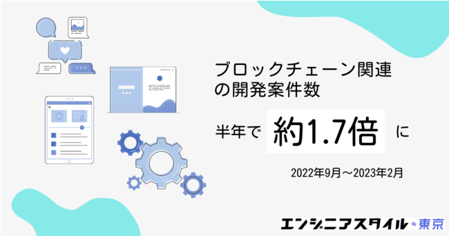 当社が運営する案件情報サイト「エンジニアスタイル東京」に掲載された10万件以上のデータを分析した結果、2022年9月には713件だったブロックチェーン関連の開発案件数が、2023年2月には1211件にまで増加したことがわかりました。