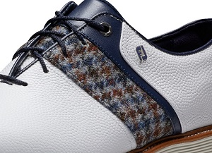 ハリスツイードの千鳥格子は、スコットランドで古くから使用される非常に有名なパターンと素材。多くのゴルファーに伝統的なパフォーマンスウェアラブルとして愛用され、その落ち着きと温かみのある色彩でさりげなく足元を演出します。