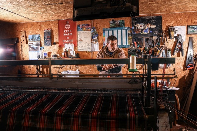 イギリス、スコットランドにあるハリス諸島を含むアウターヘイブリディーズ諸島の職人によって手織り、仕上げ、染色・紡がれるものだけがハリスツイードと呼ばれます。
