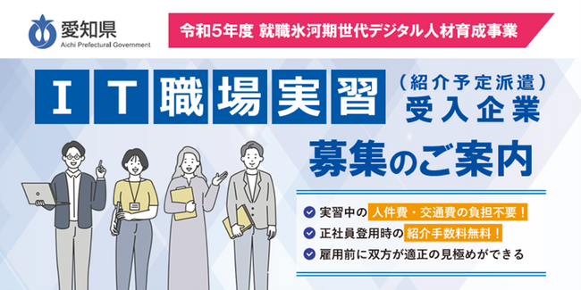 「令和5年度 愛知県 就職氷河期世代デジタル人材育成事業」は、訓練生の職場実習先企業を募集しています。
